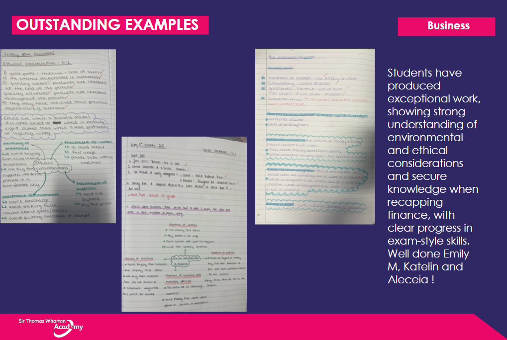 Our Business curriculum is designed to continuously equip students with a range of enterprise skills and entrepreneurial knowledge so that they are able to evaluate the potential impact of these on business success and failure. We believe in creating time to apply subject specific knowledge, skills and concepts to a wide variety of different business contexts. It is within this critical area that students develop their moral, social and cultural responsibility and their ethical understanding.